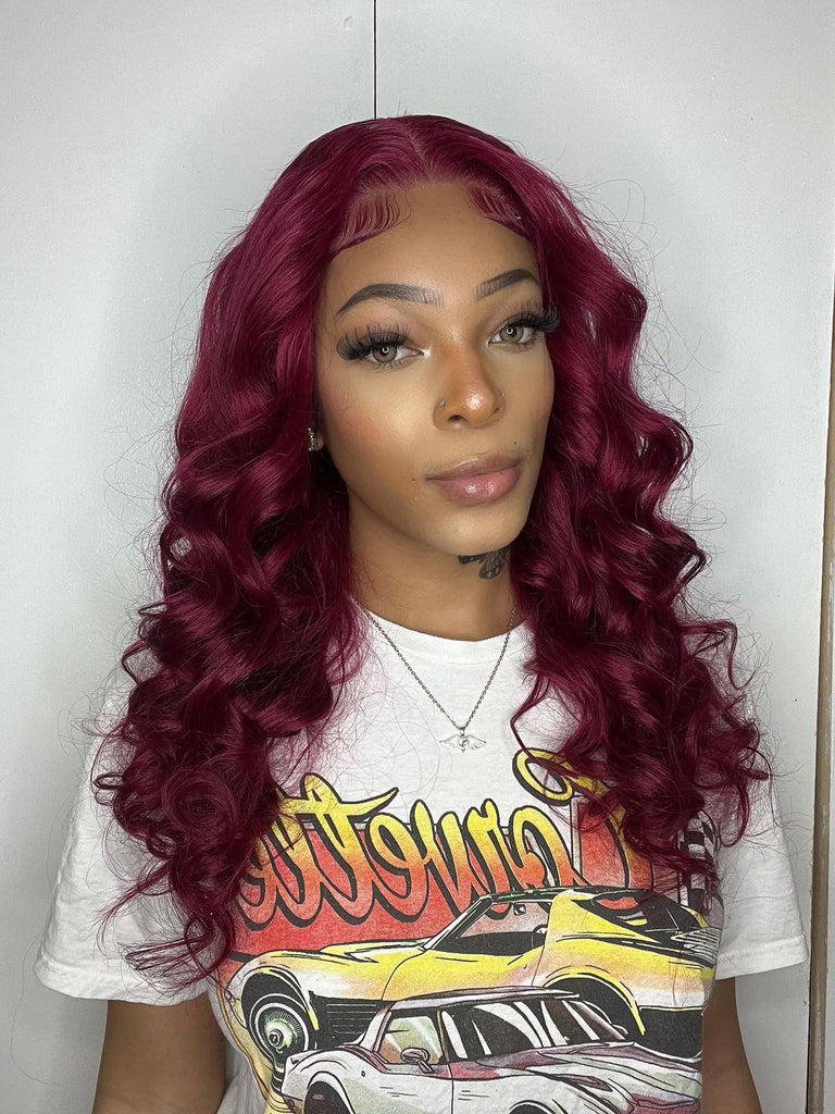 Merlot - 4x4 Lace Closure - Burgundy - Body Wave Wig - High Quality Transparent Lace - Lightly Pre-plucked- 180% Density - 100% Human Hair- Undetectable Lace - Glueless